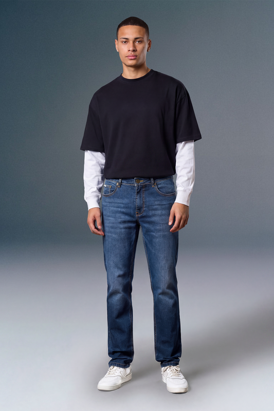 Blue Tinted Mid Rise Men's Straight Jeans