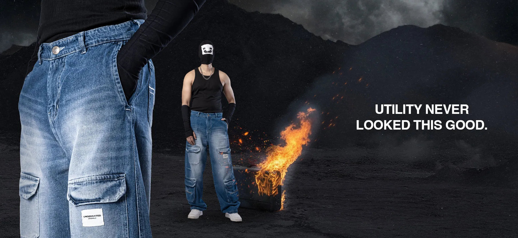 Rusty Blue Baggy Cargo Jeans For Men