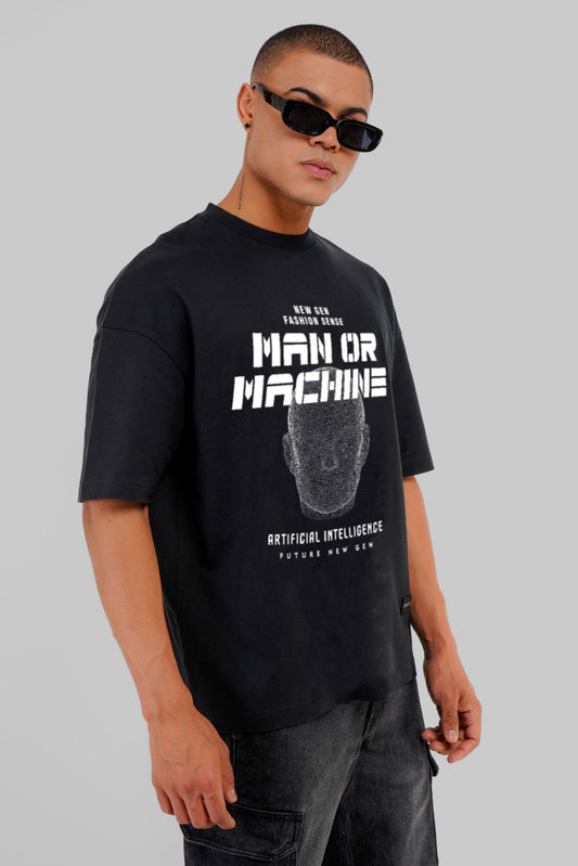 Man Or Machine Black Baggy Fit T-Shirt Men