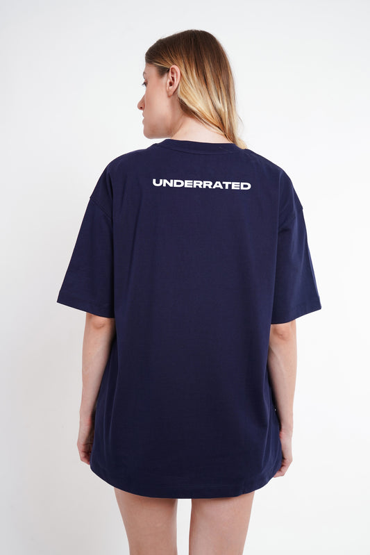 Pink Flower Navy Blue Oversized Fit T-Shirt Women