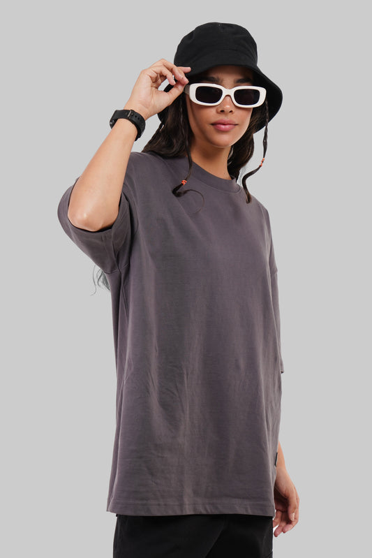 Romance Graphic Printed Dark Grey Baggy Fit T-Shirt Women
