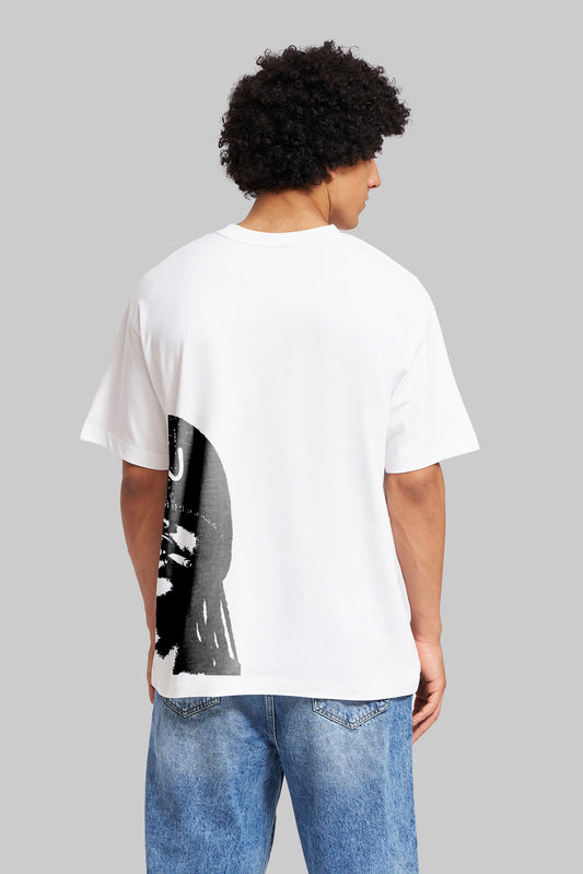 Wraparound Halftone Face White Oversized Fit T-Shirt Men