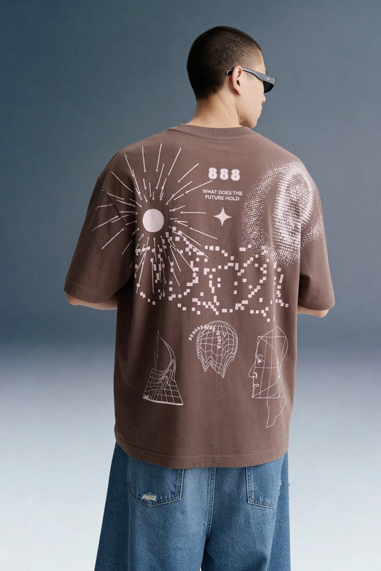Tiger Eye Black Embroidered Oversized T-shirt Men