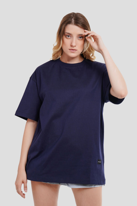 Solid Navy Blue Half Sleeves T-Shirt For Women Oversized Fit