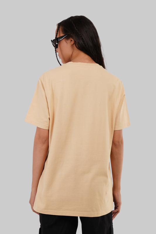 Solid Beige Half Sleeves T-Shirt For Women Boyfriend Fit