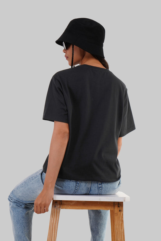 Solid Black Half Sleeves T-Shirt For Women Baggy Fit
