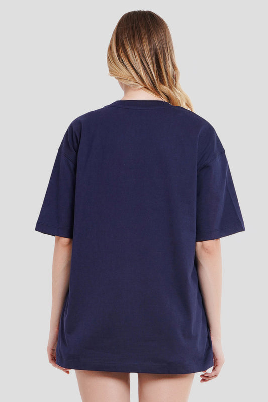 Partner N Crime Navy Blue Printed T-Shirt Women Oversized Fit