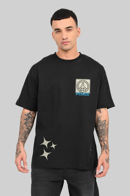Chaotic Harmony Peace Graphic Black Oversized Fit T-Shirt Men