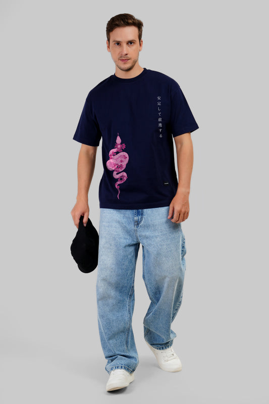 Pink Serpent Navy Blue Oversized Fit T-Shirt Men