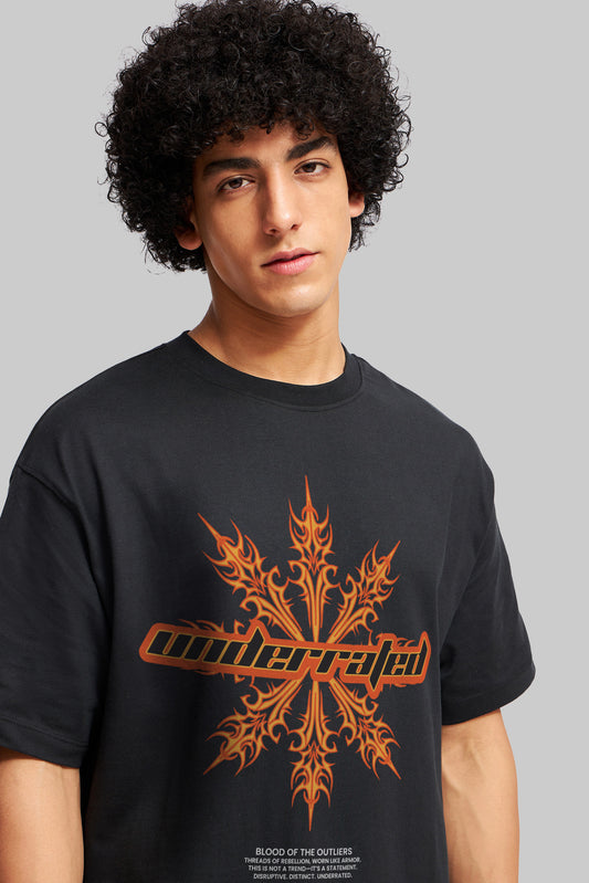 Gothic Fire Black Oversized Fit T-Shirt Men