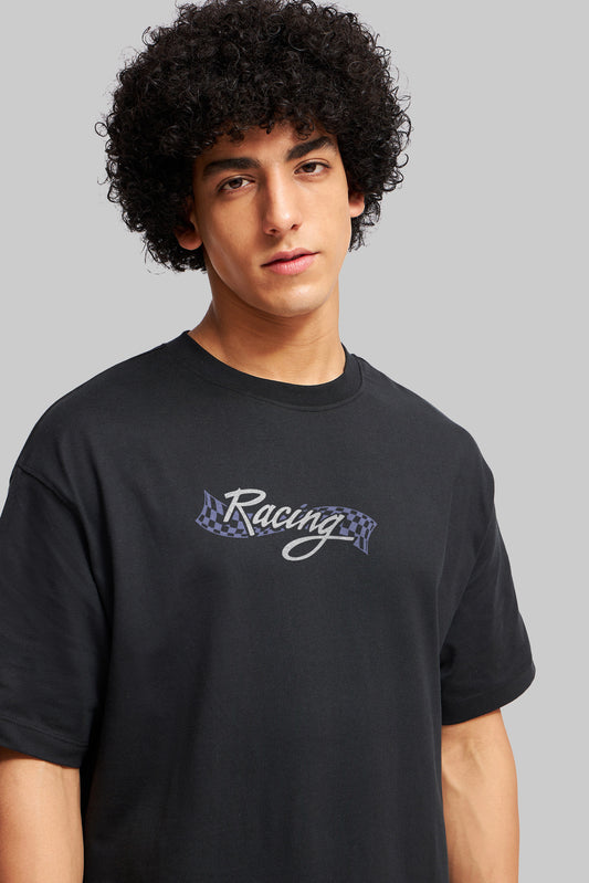 Full Throttle Race Black Oversized Fit T-Shirt Men