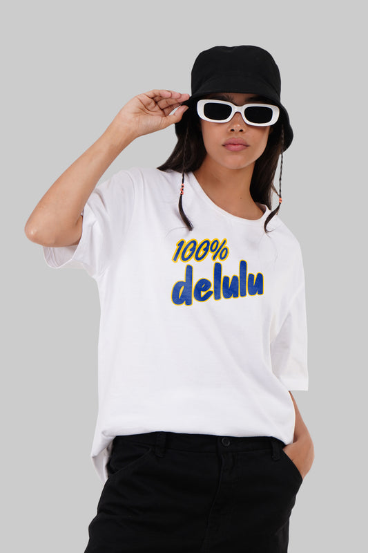 100% Delulu White Boyfriend Fit T-Shirt Women