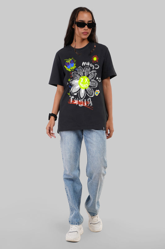 Chalk Flower Black Boyfriend Fit T-Shirt Women