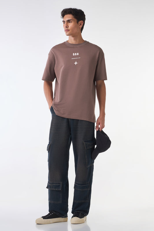 Beige Neck Logo Print Oversized T-Shirt For Men