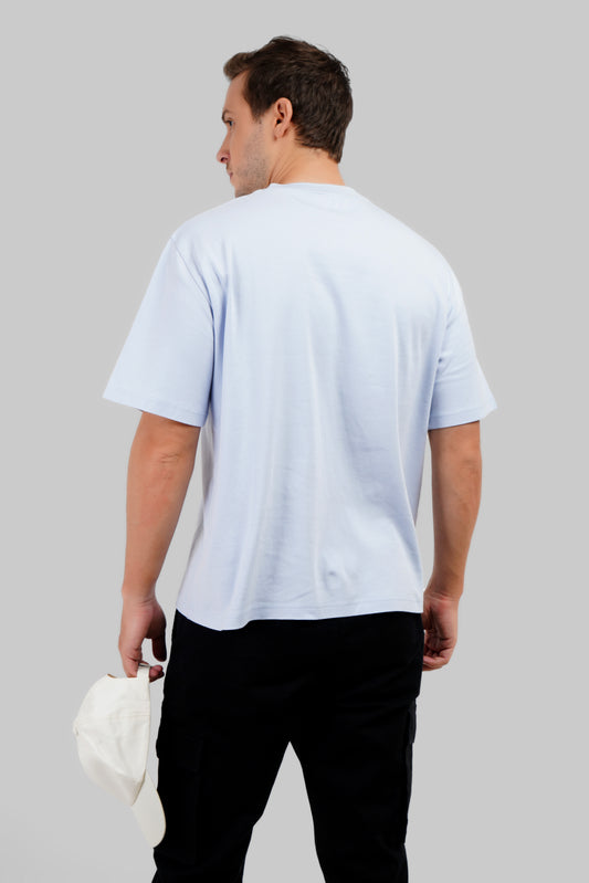 Powder Blue Neck Logo Print Oversized T-Shirt For Men