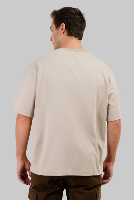 Beige Neck Logo Print Oversized T-Shirt For Men
