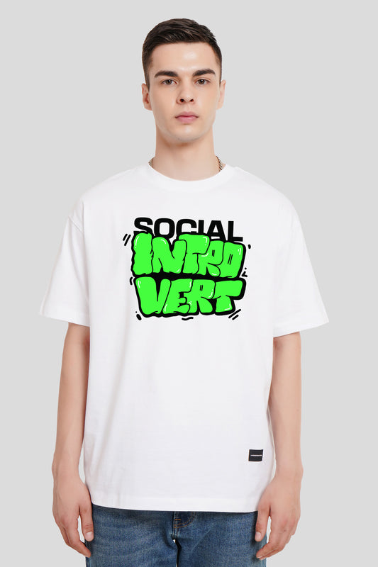 Social Introvert White Printed T-Shirt Men Oversized Fit