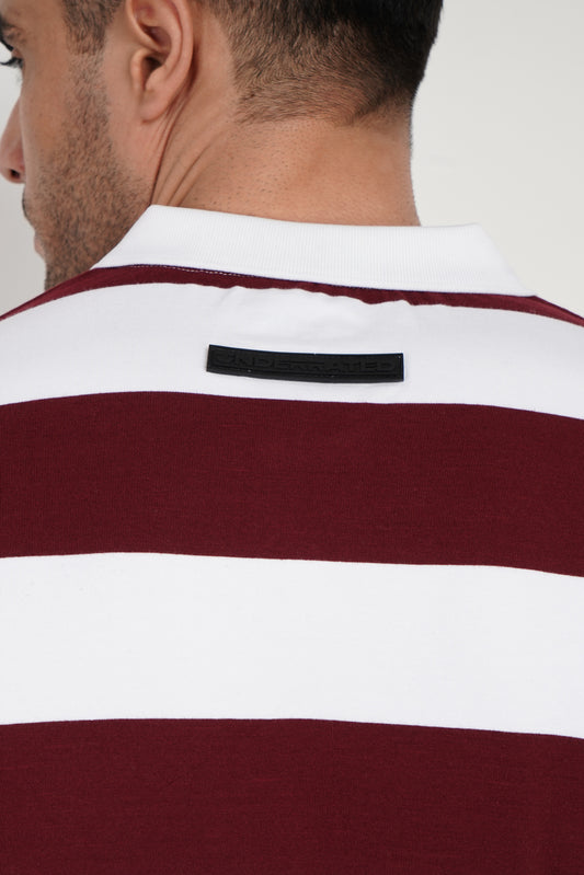Maroon Patchwork Collar Polo T-Shirt