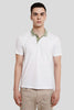 An attitude-infused closet staple. This men's polo neck t-shirt combo argues for classic pieces that can be worn every day. With a contrast olive green collar and the same detail, the white tee creates a mirrored effect, while the navy blue tee has bold Underrated text branding on a clean white collar. It is nuanced. It is deliberate. It belongs to you. These pieces are light, crisp & fitted to flatter with no stiffness because they are made of high-quality stretch pique fabric. Wear this one with cargo shorts, chinos, or loose jeans; it always looks great.