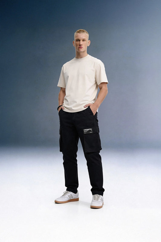 Black Mid Rise Regular Fit Men's Cargo