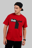 Half bold, half raw, this oversized red typography t-shirt flips the script with underrated printed in a split white-and-black effect, like the ink’s just been peeled off or torn through tape. A graphic that feels unfinished on purpose, built for men who never settle for polished, always go for real. Made from heavyweight cotton with dropped shoulders and a thick ribbed collar, it’s premium comfort wrapped in street energy. Style it with ripped cargos and retro sneakers for that undone-but-iconic look.
