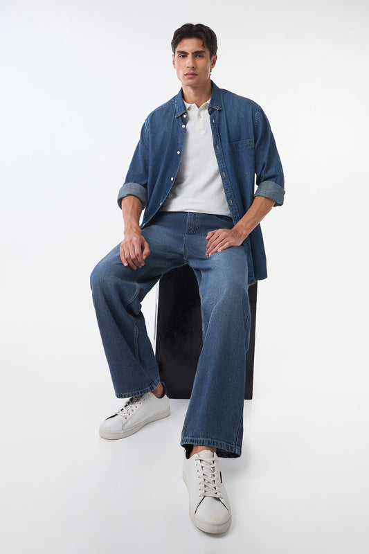 Blue Mid Rise Distressed Men's Relaxed Jeans